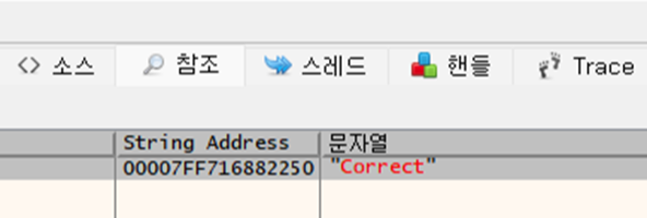 문자열 참조 기능을 통해 'correct'를 찾았다.