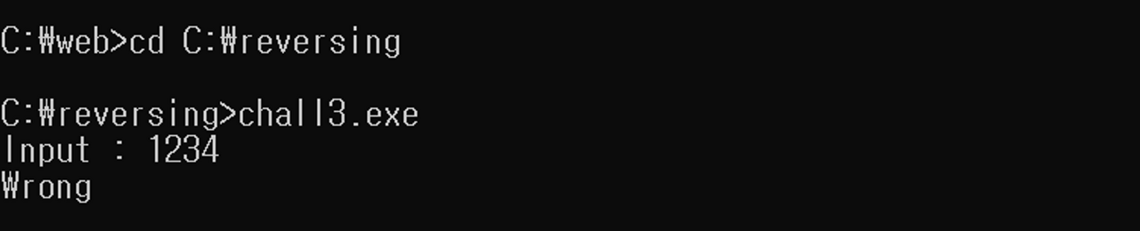 일단 “Input :” 이 뜨면서 입력창이 떴고, 1234를 입력했더니 Wrong이 출력된다.