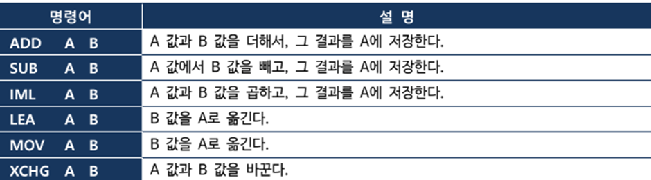 - Opcode가 코드 행위의 주체라면, Operand는 행위에 필요한 부가적인 요소이다.