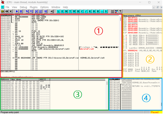 ① Assembled Code : 기계어를 어셈블리어로 번역한 부분이다. 어셈블리 코드를 실행 또는 중지할 수 있도록 환경을 제공한다.