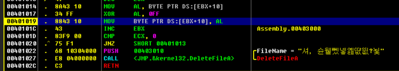 - Assembly.00401010이 새로 등장했다.