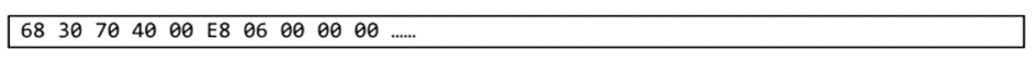 다음과 같은 기계어 코드가 있을 때, 변환을 하기 위해서는 0x68이 무슨 값인지부터 알아야 한다.