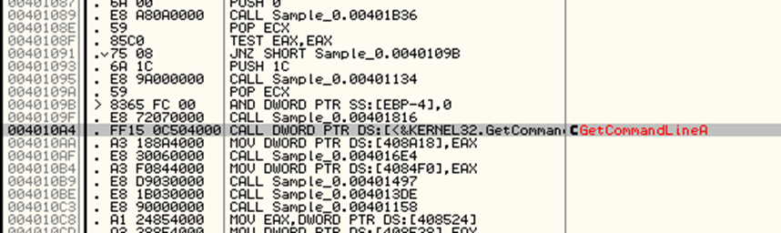 3. GetCommandLineA() 함수를 찾는다.