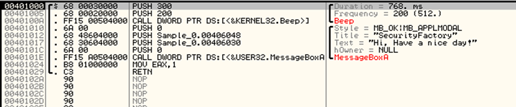 | CODE | 0040 1000 | MOV EAX, DWORD PTR DS:[0040 2000] | EAX : 0000 0000 |