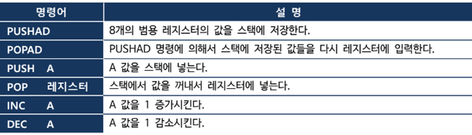● 자주 사용하는 어셈블리어