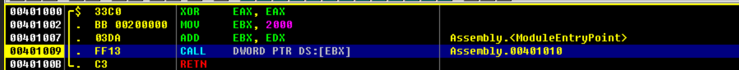 - 실행 파일이 메모리에 로드되면 EDX 레지스터에는 OEP 값이 들어간다. 이 값을 EBX 레지스터에 더한다.