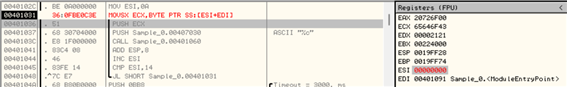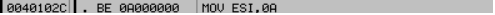 - 0040102C 주소에서 값 “A”가 ESI 레지스터에 저장되는 것을 확인할 수 있다.
