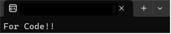 - “For Code!!” 문자열이 제대로 출력되는 것을 확인할 수 있다.