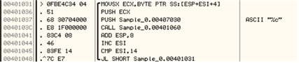 - 00401031 주소부터 00401048 주소 까지 코드가 반복된다.