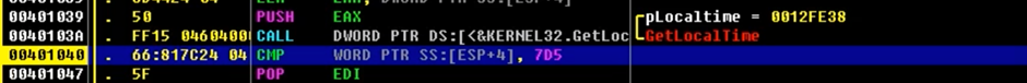 | CMP WORD PTR SS:[ESP+4], 7D5 |