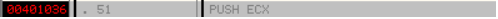 - 00401036 주소의 ECX 레지스터에 대문자 “S”의 아스키코드 값을 넣는다.