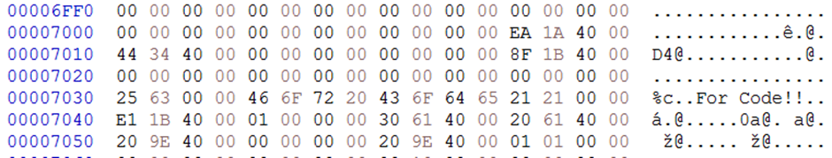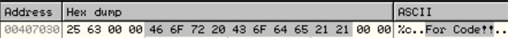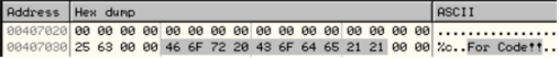 - 문자열 “For Code!!”는 0x407034에 위치해있다.