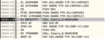 - 00401031 주소부터 00401048 주소 까지 코드가 반복된다.