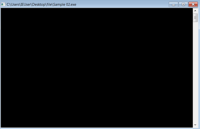 - Sample 02.exe 실행시켰을 때 command 창이 뜨지만 아무 동작 없이 실행이 종료된다.