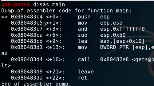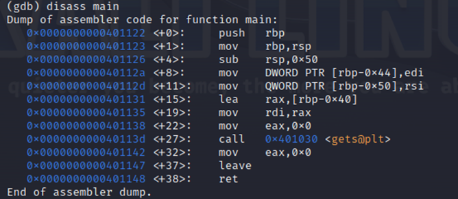 - 브레이크 포인트를 메인에 걸고 'disas main'을 통해 확인한다.