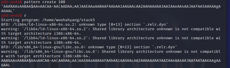 - stack5.c 파일을 실행하면 입력 후 엔터를 쳐도 아무런 변화도 없다.