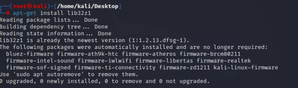 - 칼리 리눅스에서 32bit 프로그램 실행을 위한 라이브러리를 설치한다.