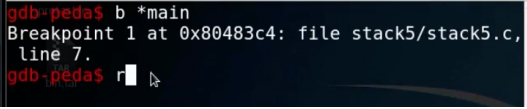 - gdb를 이용해 stack5 메인 호출을 확인했다.