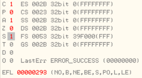 [004010D6] 주소의 S플래그 값을 1에서 0으로 바꿔준다.