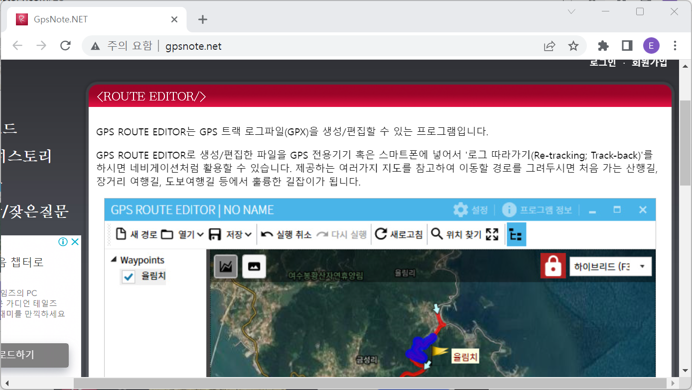 4. 중간에 적힌 http://www.gpsnote.net/ 링크로 접속해 GPS Route Editor라는 프로그램을 다운로드한다.