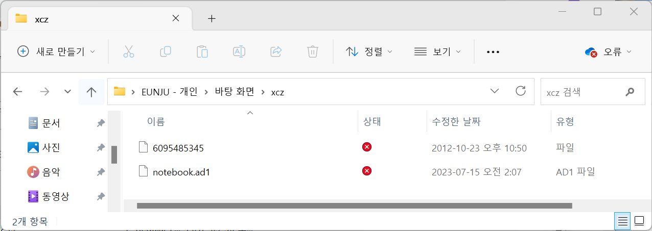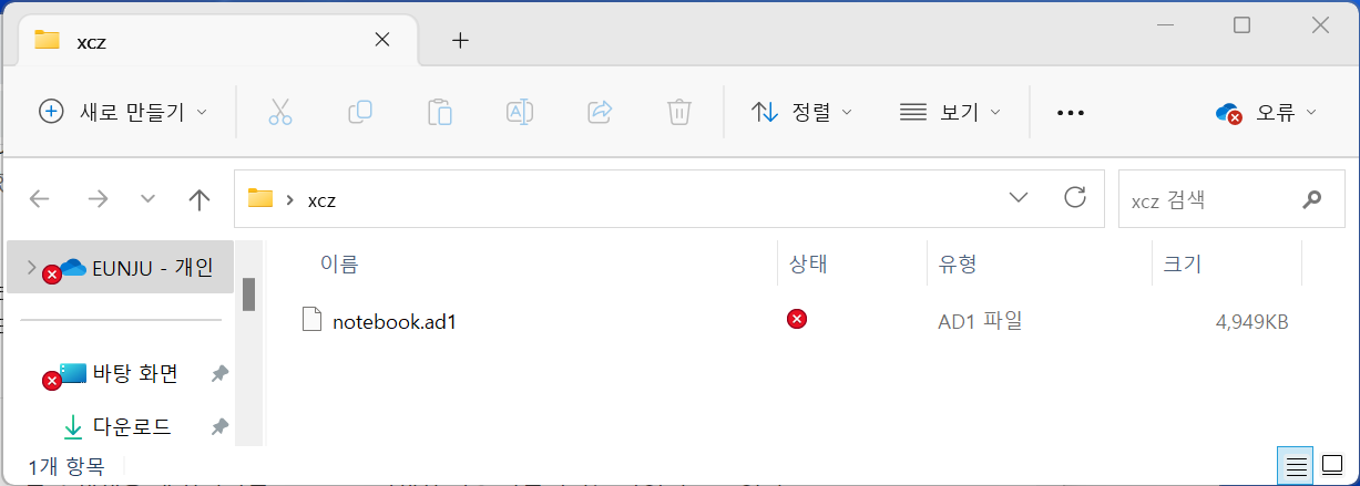 3. 확장자를 변경해 파일 이름을 notebook.ad1으로 다시 지정해주고 FTK로 연다.