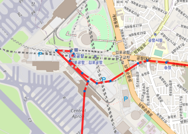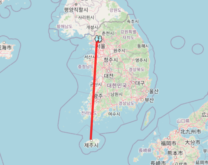 공덕에서 출발해 김포국제공항을 지나 제주도로 도착하는 것을 확인할 수 있다. 하지만 이 문제를 만들 당시 지도에서 최종 위치가 7-ELEVEN이었기 때문에 정답은 'GONGDEOK_GIMPOINTERNATIONALAIRPORT_7-ELEVEN' 이라고 한다.