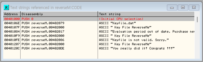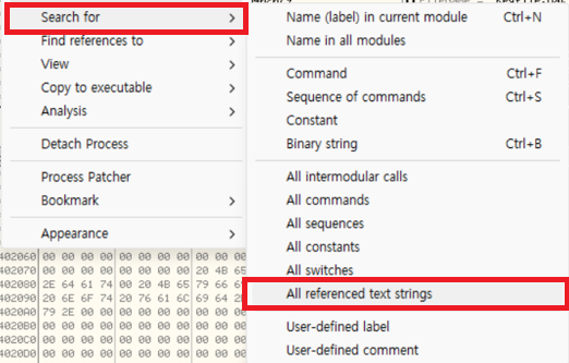 다른 문자열을 찾기 위해 Search for → All referenced text strings를 클릭한다.