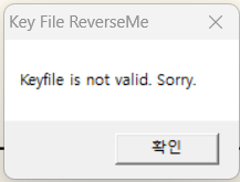 OllyDBG를 다시 실행해보면, [004010BF] 주소에서 점프한 뒤, “Keyfile is not valid. Sorry” 문자열이 출력된 것을 확인할 수 있다.