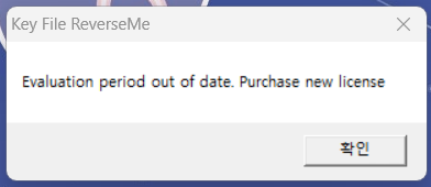 reverseMe 파일을 실행하면, 라이센스를 새로 구입하라는 문구가 출력된다.