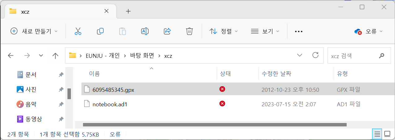 파일을 추출한 후 아래 사진과 같이 확장자명을 변경한다.