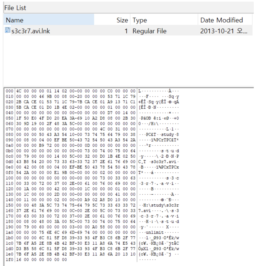 원본 경로_만들어진 시간_마지막 실행 된 시간_쓰인 시간_볼륨 시리얼을 찾기 위해 010 Editor를 이용하겠다.