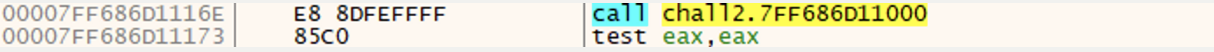 [00007FF686D11173] 주소에서 두 문자열을 비교하므로 [chall2.7FF686D11000] 주소에 “Correct”를 출력하는 문자열이 있을 것이다.