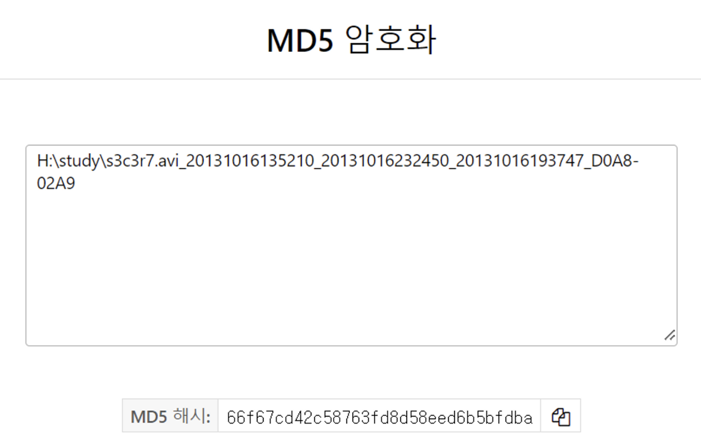 → MD5 해시값 : 66f67cd42c58763fd8d58eed6b5bfdba