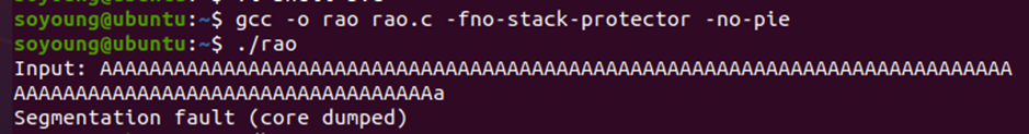 그리고 64개 이상의 문자열을 입력해보면 이렇게 segmentation fault라는 에러가 나게 된다.