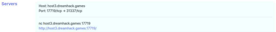 접속 정보 보기를 눌러 확인해 보니 서버 주소를 확인할 수 있고 해당 주소를 가지고 플래그 를 획득해야 한다.