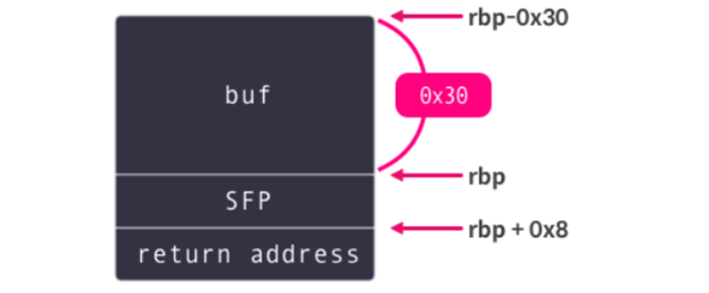 또한 스택이 버퍼 30 크기 + SFP 8크기 + return address 8 크기로 구성됐을 것이라 추측해볼 수 있다.