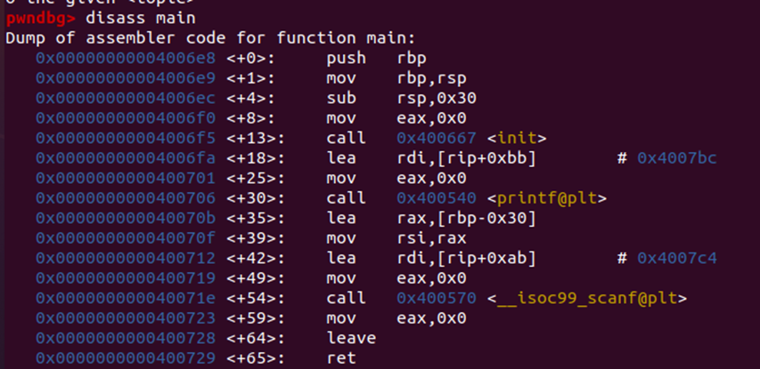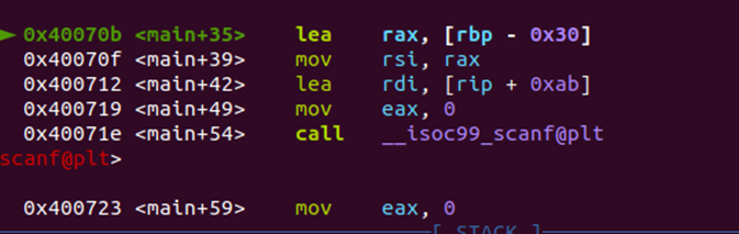 main+35에 이렇게 [rbp-0x30]에 버퍼가 위치하는 것을 알 수 있다.