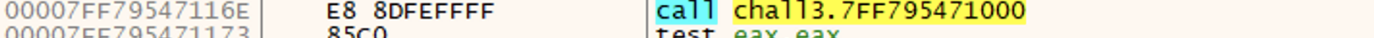[00007FF795471173] 주소에서 두 문자열을 비교하므로 [chall3.7FF795471000] 주소에 “Correct”를 출력하는 문자열이 있을 것이다.