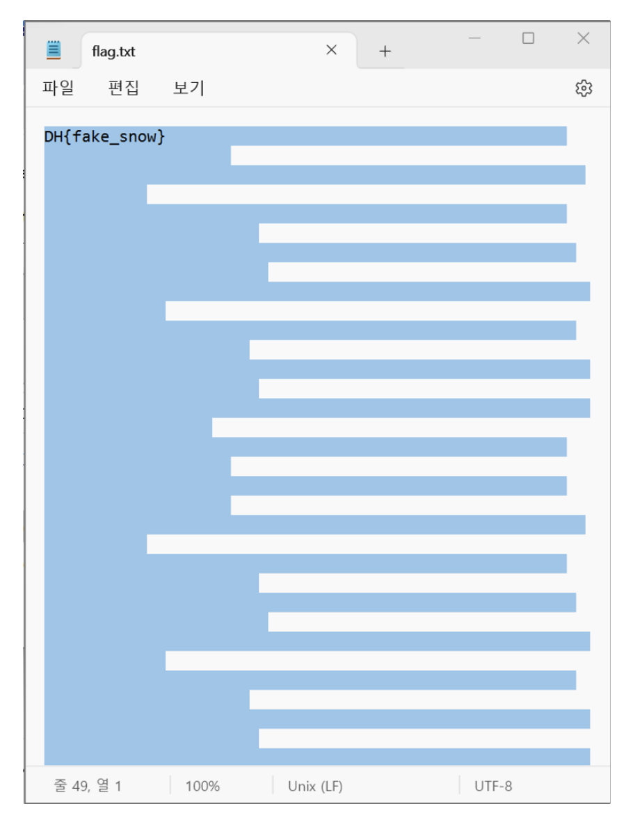 flag.txt와 Snow.jpeg 파일이 등장했다.