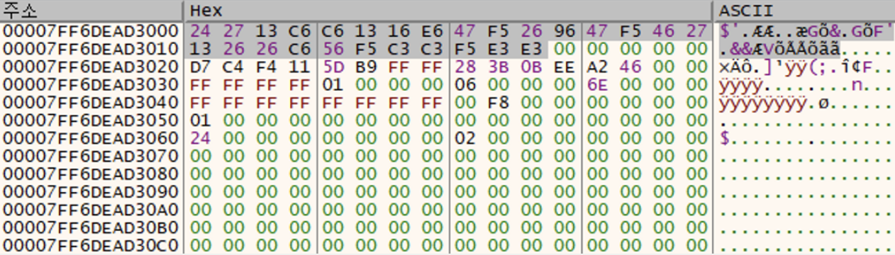 [7FF6DEAD3000] 주소의 값을 확인해보니 위와 같은 값이 저장되어 있다.