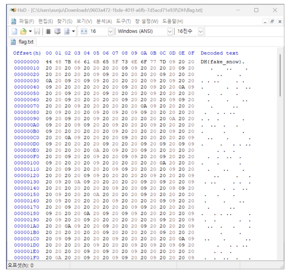HxD 파일에 올려보니 정말 하얀 눈이 내리는 것처럼 보인다.