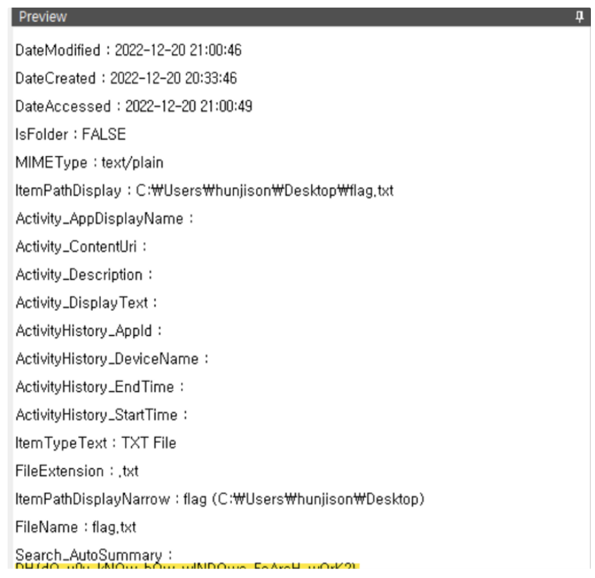 C:\Users\hunjison\Desktop 안에 flag.txt 파일을 발견할 수 있다.