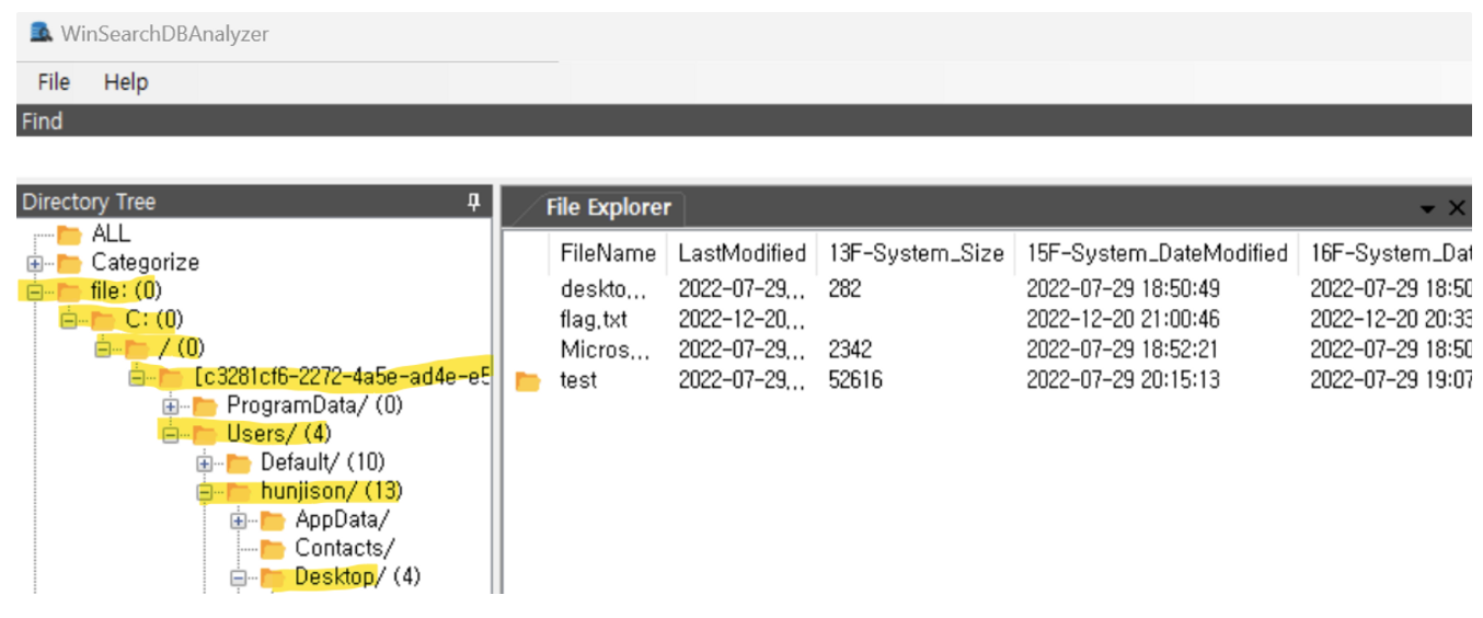 이 파일을 분석하기 위해서 WinSearchDBAnalyzer을 이용하겠다.