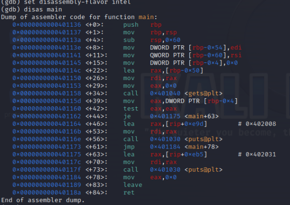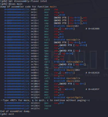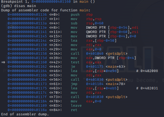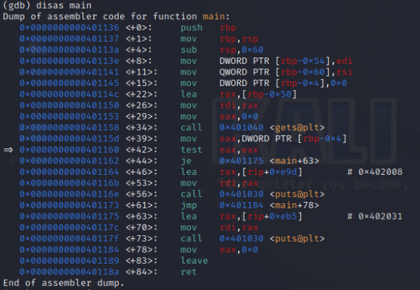 disas main : 메인 함수를 디버깅