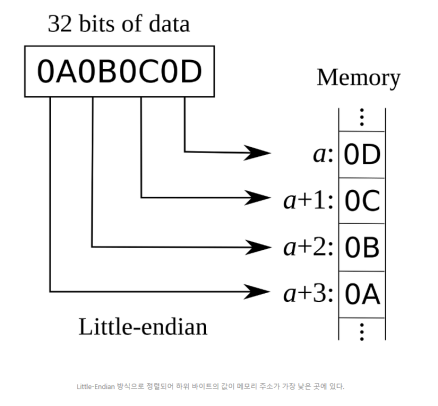 결과 값이 0x64636261으로 거꾸로 들어간 걸 확인할 수 있다