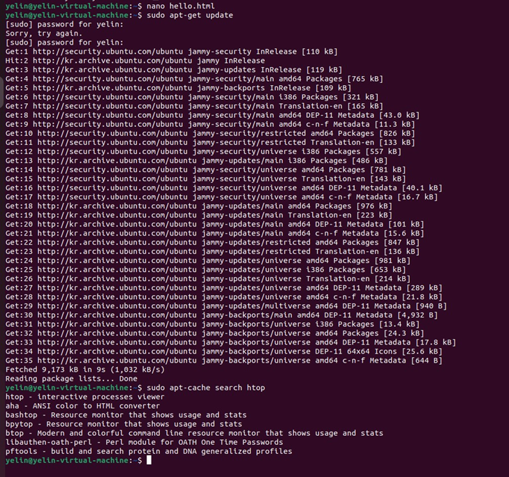 5. sudo search htop 입력 → htop라고 하는 모든 프로그램을 찾아줌