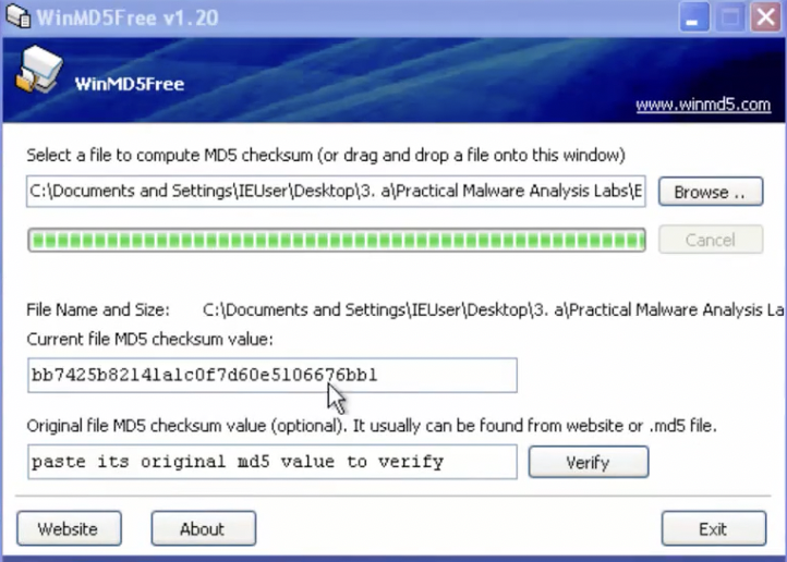 2. winmd5free를 통해서 해시값을 알아낼 수 있다. (파일끌어오기)