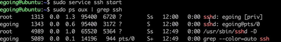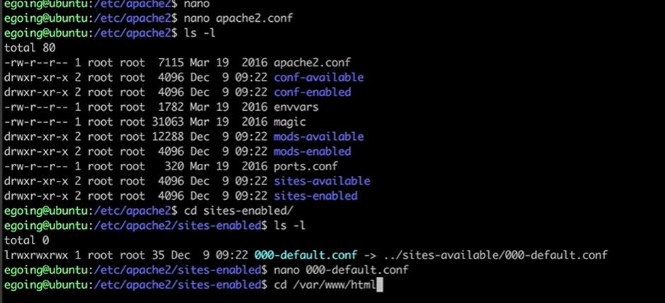[검은 배경의 사용자 egoing / ubuntu 서버 자료 일부 해당 강의 발췌했습니다.]