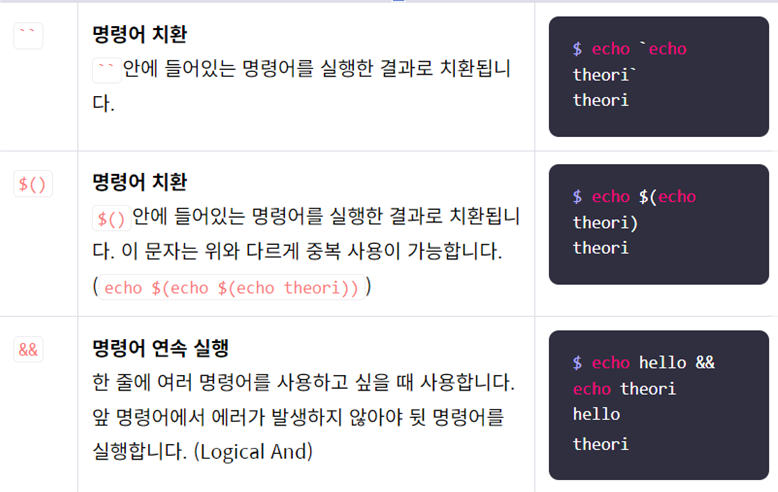 - Command Injection: 이용자의 입력을 시스템 명령어로 실행하게 하는 취약점이며 명령어를 실행하는 함수에 이용자가 임의의 인자를 전달할 수 있을 때 발생