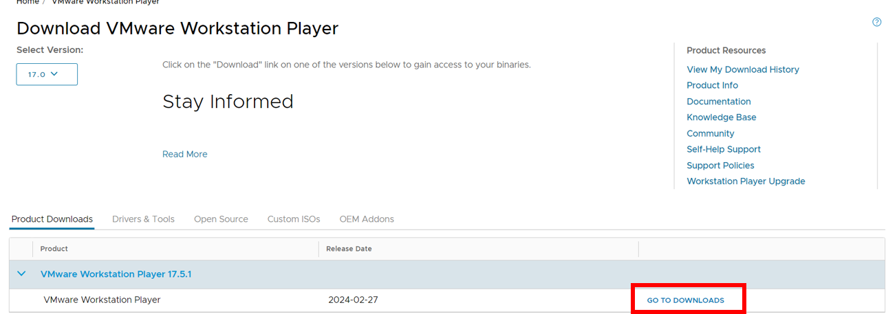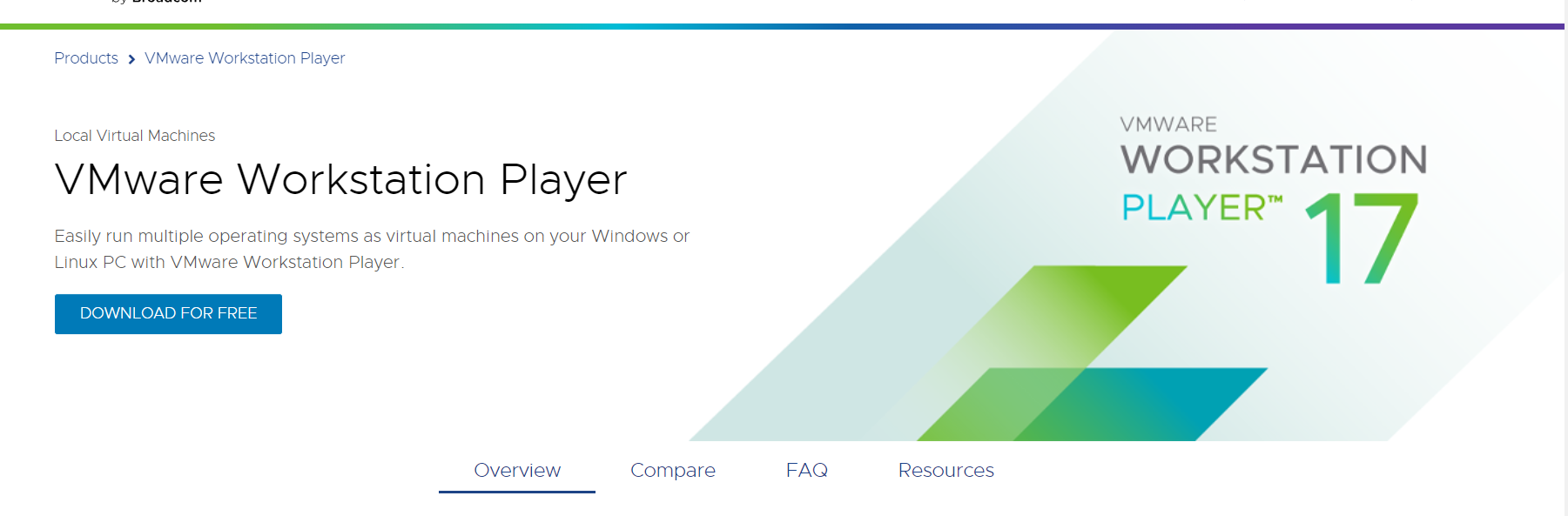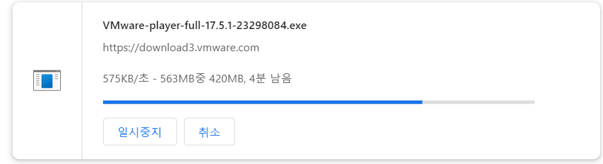 윈도우 환경에 설치할 것이니 'VMware Workstation 17.5.1 Player for Windows 64-bit Operating Systems'의 'DOWNLOAD NOW'를 눌러 다운로드를 진행해줍니다.